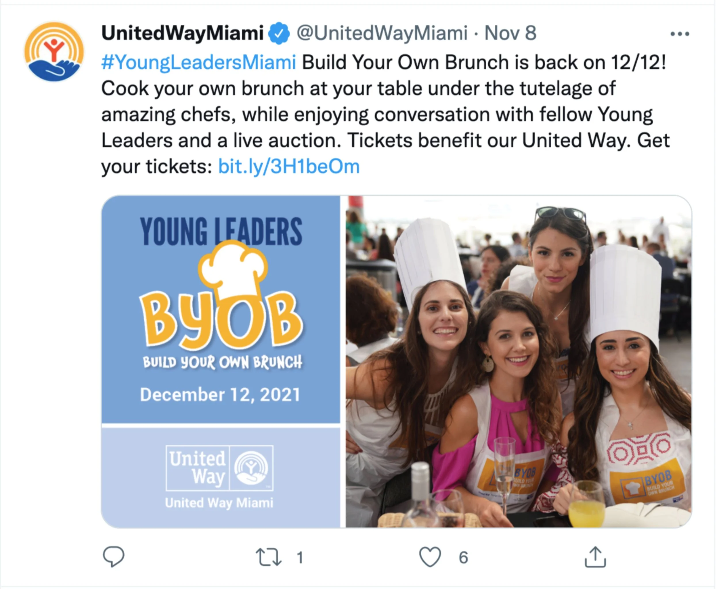 #YoungLeadersMiami Build Your Own Brunch is back on 12/12! Cook your own brunch at your table under the tutelage of amazing chefs, while enjoying conversation with fellow Young Leaders and a live auction. Tickets benefit our United Way. Get your tickets: https://bit.ly/3H1beOm